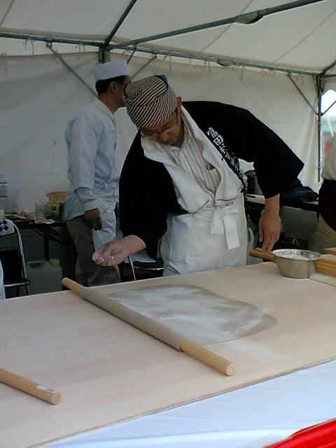 われらが、商業連合会の「ボス」さんも手打ちそばのそばうち姿。とてもお似合いでした。