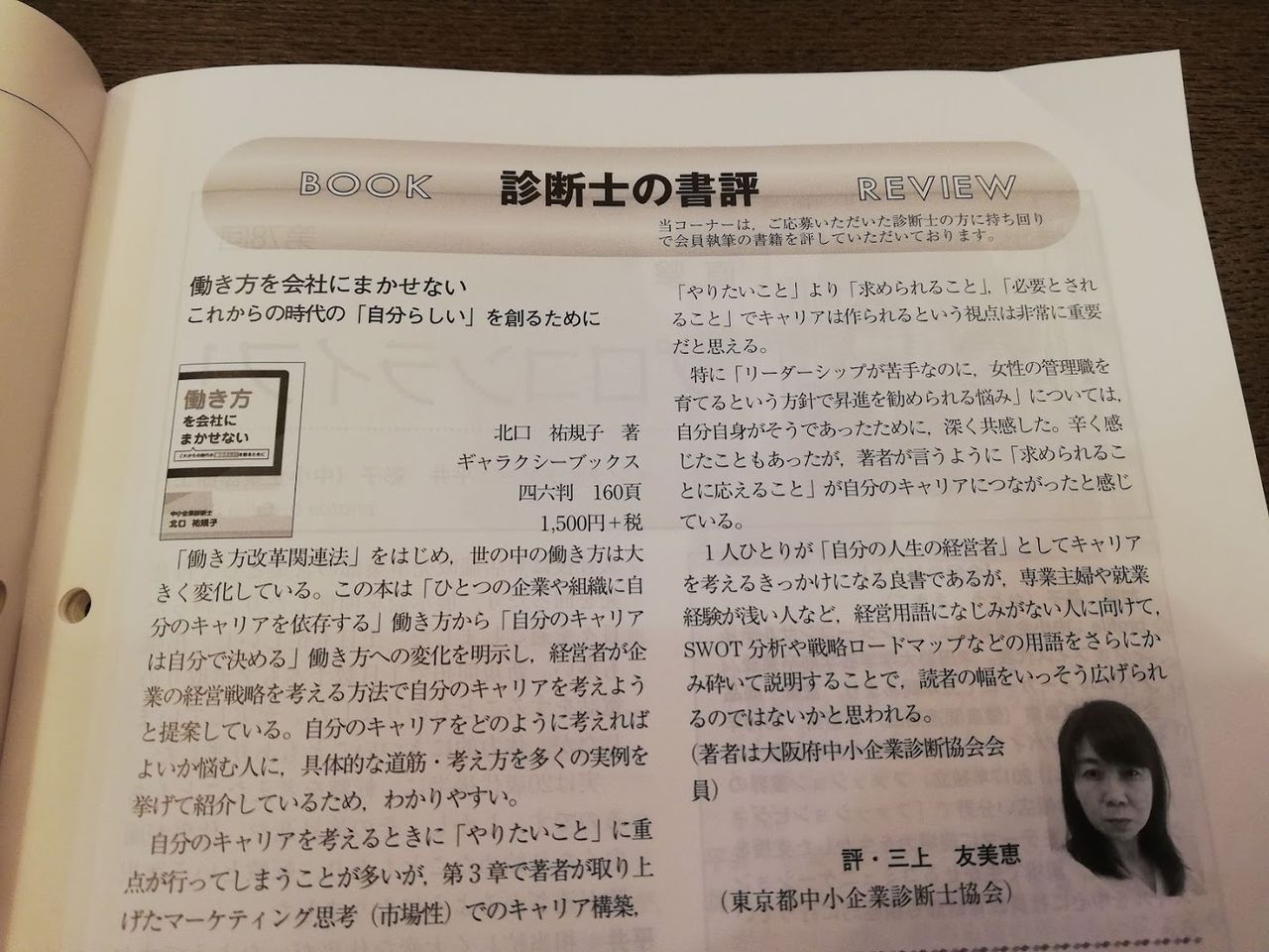 4月に出版した著書「働き方を会社にまかせない」〜これからの時代の「自分らしい」を創るために〜を、中小企業診断士の全国版会報誌である「企業診断ニュース」の書評で取り上げていただきました。とても、適切なコメントをいただき、感謝、感謝です!